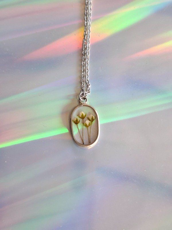 Este dije con pimpollos de Corona de Novia es una auténtica joya realizada en alpaca, e incluye su cadena de acero quirúrgico y una bolsita para que te acompañe a donde vayas, aunque no lo lleves puesto :)