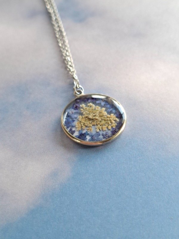 Este amuleto está elaborado con flores de Zanahoria silvestres y Verbenas azules;